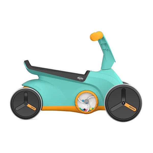 An integrated game on the side provides a playful introduction to the GO. No child can resist such an enticing game. Four large wheels give the GO stability, ensuring that your child can safely get on, ride, and get off, and the BERG walking car won’t tip over.