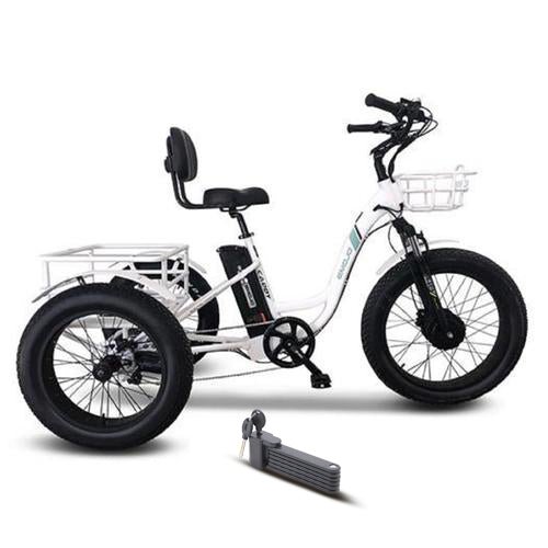 Exclusive Limited Time Offer: Bikeberry.com customers will receive a FREE Poplock bicycle lock with the purchase of the Emojo 500W Caddy PRO Step Through Electric Tricycle ($84.95 value!)